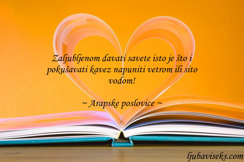 Citati i izreke Arapske poslovice o ljubavi: Zaljubljenom davati savete isto… FacebookTwitterPinterestWhatsApp Zaljubljenom davati savete isto je što i pokušavati kavez napuniti vetrom ili sito vodom! ~ Arapske poslovice ~