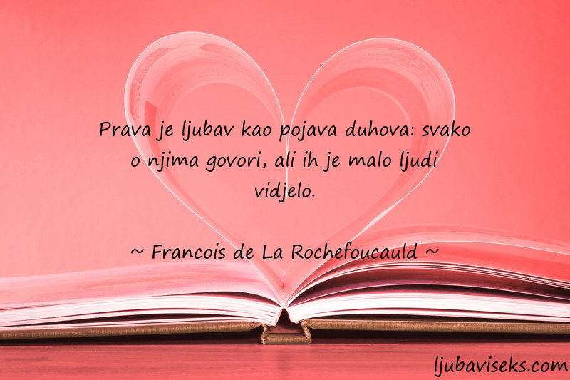 Citati i izreke Francois de La Rochefoucauld o ljubavi: Prava je ljubav kao… FacebookTwitterPinterestWhatsApp Prava je ljubav kao pojava duhova: svako o njima govori, ali ih je malo ljudi vidjelo. ~ Francois de La Rochefoucauld ~