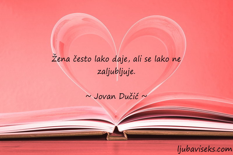 Citati i izreke Jovan Dučić o ljubavi: Žena često lako daje… FacebookTwitterPinterestWhatsApp Žena često lako daje, ali se lako ne zaljubljuje. ~ Jovan Dučić ~