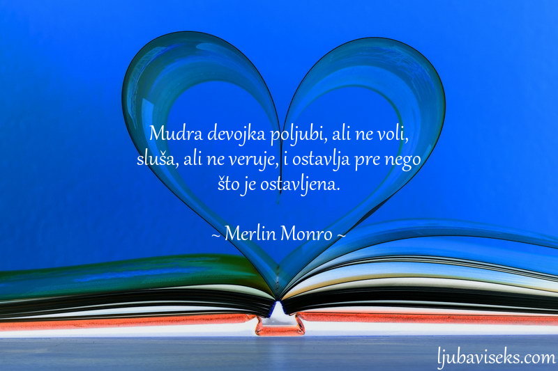 Citati i izreke Merlin Monro o ljubavi: Mudra devojka poljubi ali… FacebookTwitterPinterestWhatsApp Mudra devojka poljubi, ali ne voli, sluša, ali ne veruje, i ostavlja pre nego što je ostavljena. ~ Merlin Monro ~