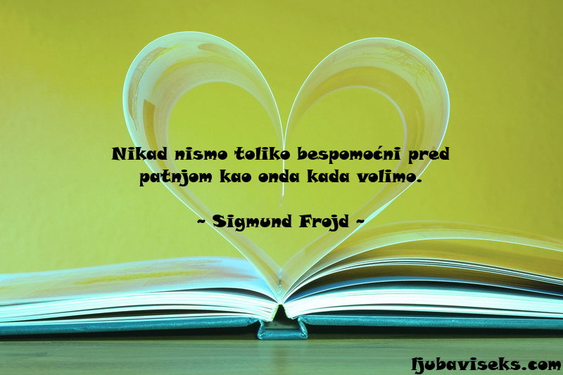 Citati i izreke Sigmund Frojd o ljubavi: Nikad nismo toliko bespomoćni… FacebookTwitterPinterestWhatsApp Nikad nismo toliko bespomoćni pred patnjom kao onda kada volimo. ~ Sigmund Frojd ~