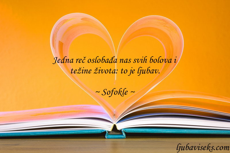 Citati i izreke Sofokle o ljubavi: Jedna reč oslobađa nas… FacebookTwitterPinterestWhatsApp Jedna reč oslobađa nas svih bolova i težine života: to je ljubav. ~ Sofokle ~